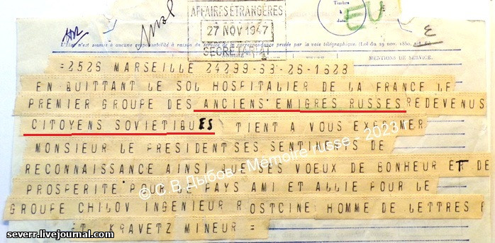 телеграмма совграждан, бывших белоэмигрантов, президенту Франции